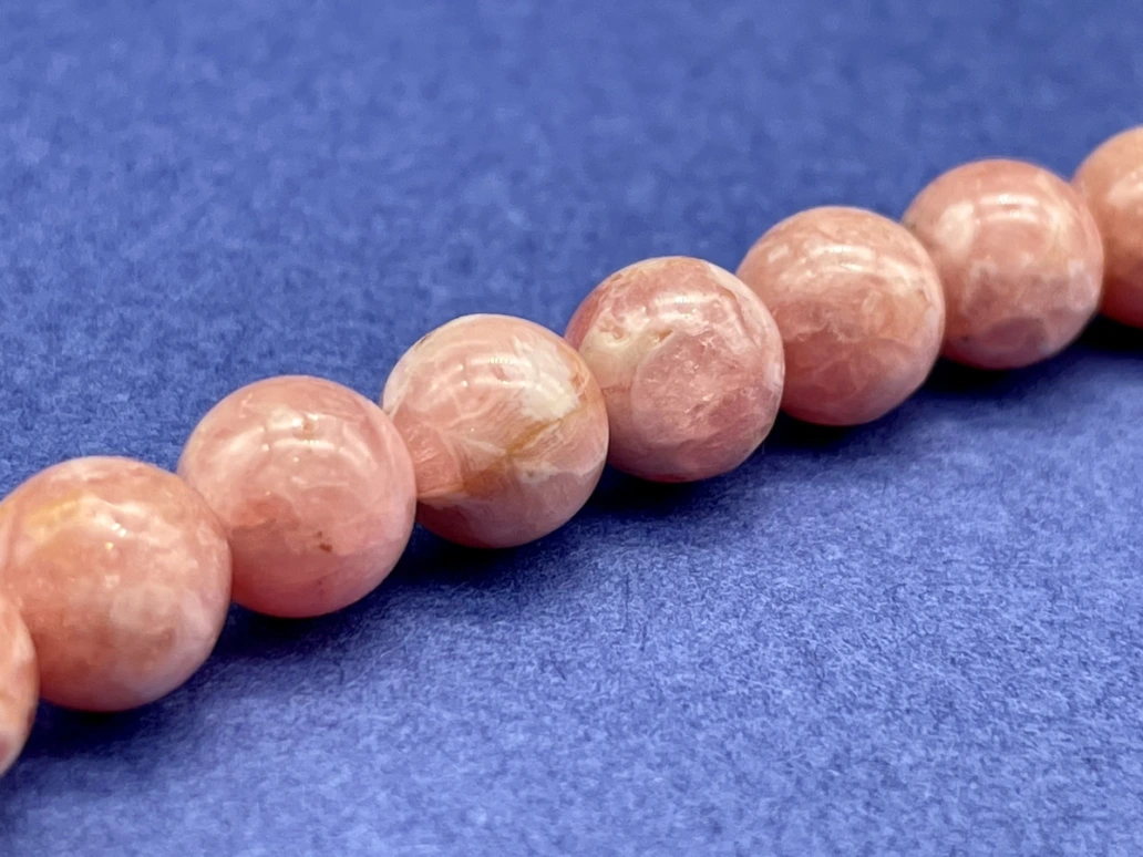 パワーストーンのお店で、濃い目のローズピンクにうっすらと白い縞模様のあるインカローズブレスレットを目にした瞬間 これだ!とひらめいて購入しました。