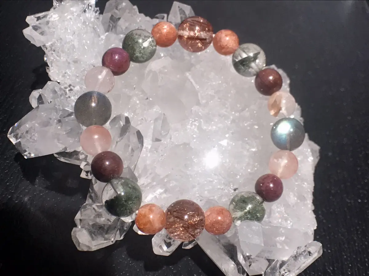 ガーデンクォーツは近年、中国の富裕層がビジネスのお守りとして一つは持つ財運の石と言われ人気が高まっています。一粒一粒がまるでひとつの世界のように見える魅力的な石で、精神安定、地に足をつける、マイナスエネルギーから守る等のサポートを行います。