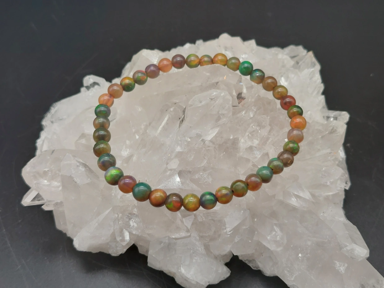 このブレスレットは、ブラックオパールの神秘的な美しさを活かし、様々なスタイルや個性に寄り添う特別なアクセサリーとなっています。