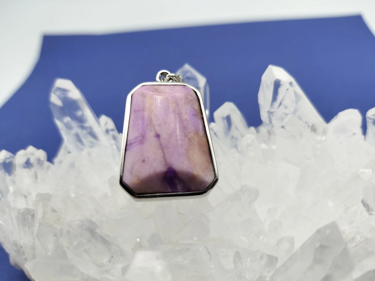 – ピンクスギライトの美しい色合いと独特の模様は、見た目にも非常に魅力的です。ファッションアイテムとしても優れたこのペンダントトップは、美しさとスピリチュアルな意味合いを両立させたい人におすすめです。