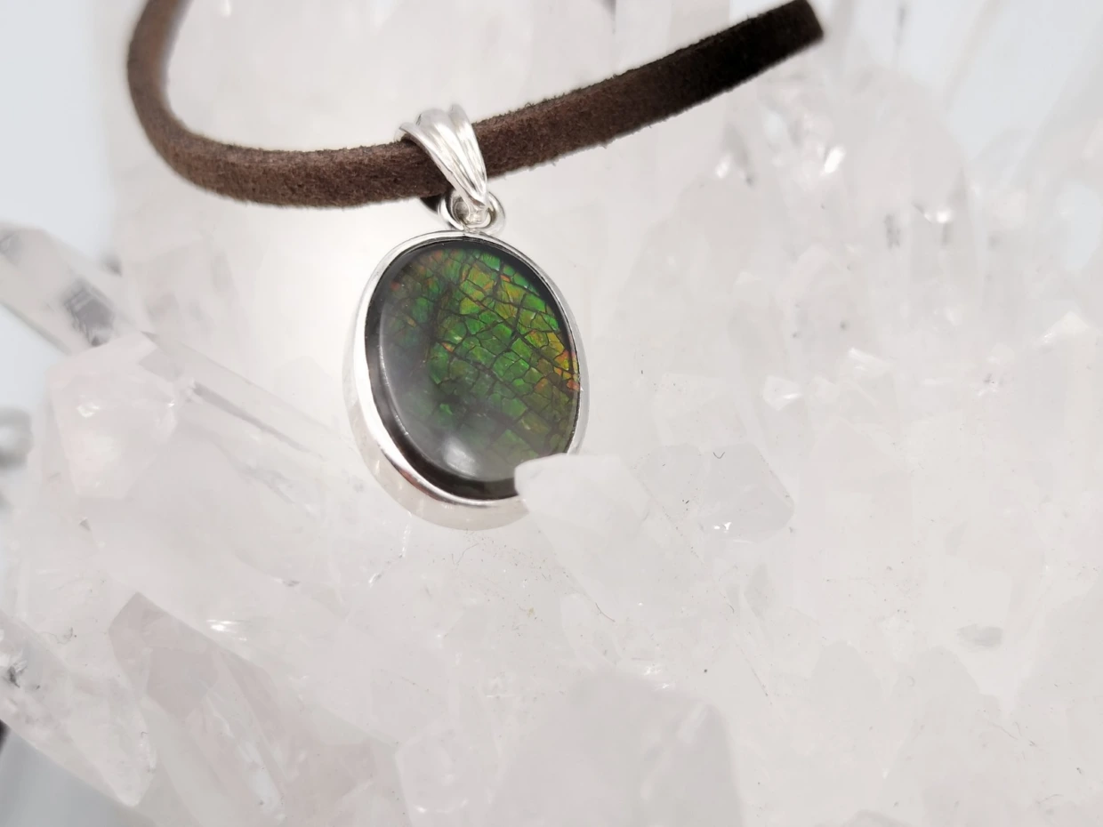 – アンモライトはその美しい虹色の輝きで知られ、非常に魅力的な見た目を持っています。日常の装いに華やかさを加えたい人や、ユニークで美しいアクセサリーを身に着けたい人におすすめです。